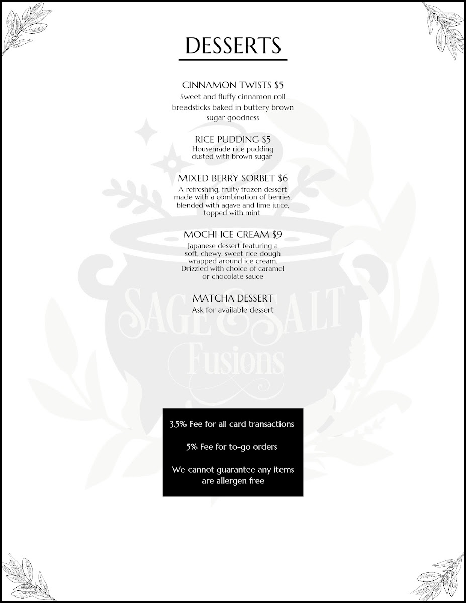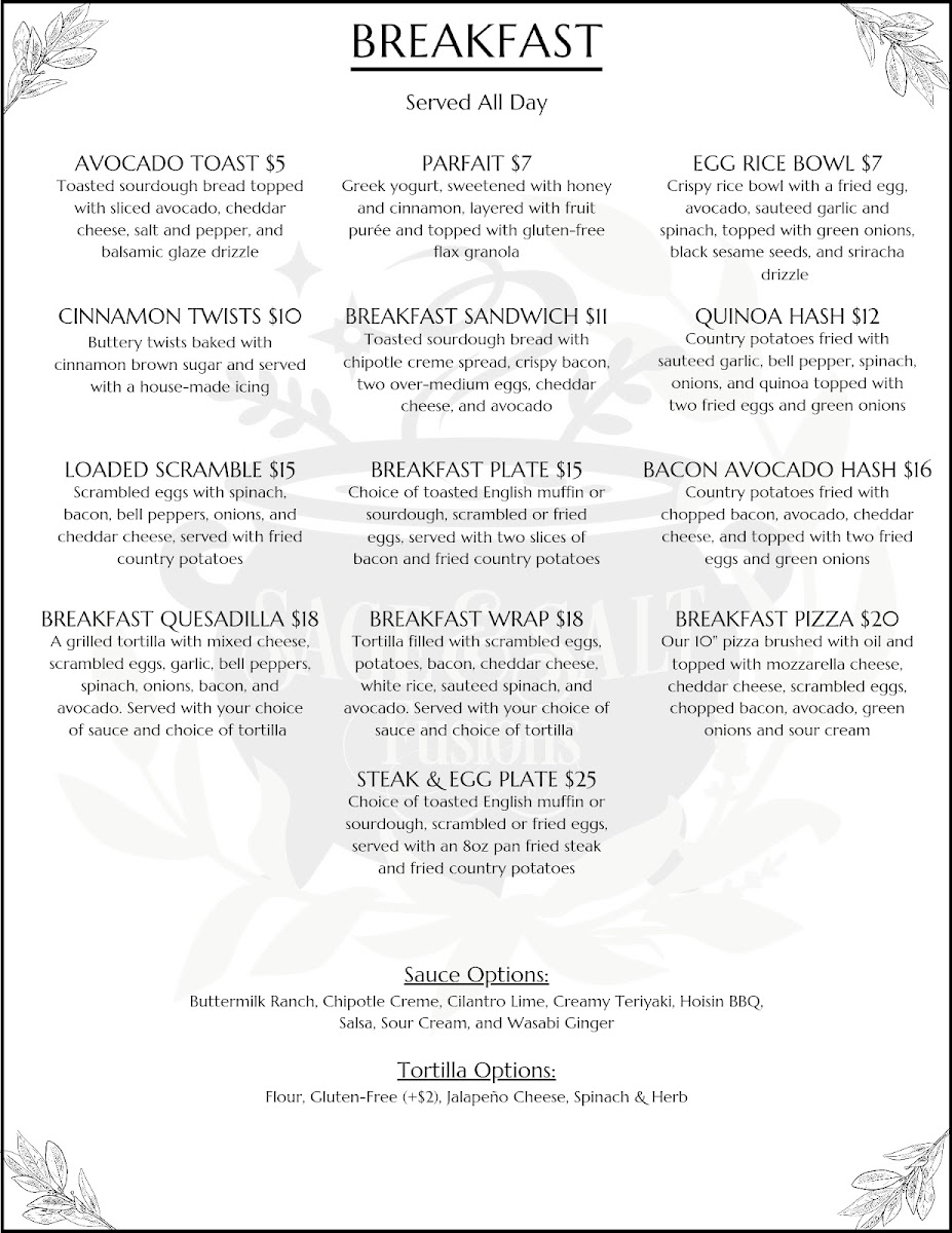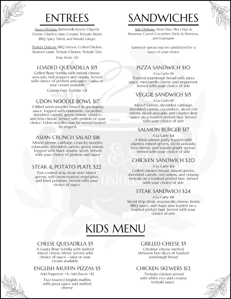 Sage & Salt Fusions Menu